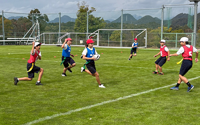 2025年11月2日(日)、関市のグリーン・フィールド中池において、「SMBCカップ 第22回全国小学生タグラグビー大会」関市大会を開催することができました。この大会は第24回関市ラグビーフットボールフェスティバル第二部関市タグラグビー大会と兼ねており、今回は9チームの参加となりました。
