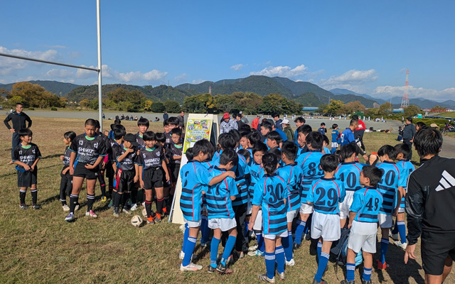 参加者はラグビースクールの皆さんでしたが、昨年以上にボールパスやキャッチなどハンドリングレベルが向上しておりスピード感がある試合となりました。また、日程と会場の変更があったにも関わらず、大勢の保護者の皆さんに応援に来ていただき、にぎやかで盛り上がった試合になりました。
