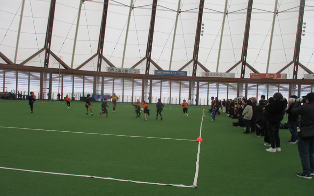 2025年12月14日(日)、今年度も出雲ドームを会場に「SMBCカップ 第22回全国小学生タグラグビー大会」島根県大会を実施しました。この年末の冬の時期に出雲ドームを会場に開催することは、県内の関係者には定着してきたように感じます。参加チームは、昨年度から1チーム減となり、8チームでの開催となりました。以前は約20チームが参加していたこともあり、参加チームが固定化してきているため、今一度働きかけの必要性を感じております。
