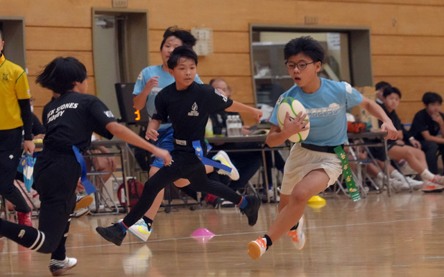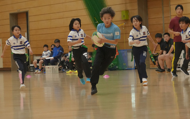 決勝トーナメントでは各予選ブロックの上位2チーム、計8チームが対戦。決勝トーナメント初戦の紋別IMERUと網走小ノースカムイの試合では、後半残り数秒の逆転劇で勝利を手にしたIMERUに続き、予選と同じ顔合わせのガリンコアタックズは東小レイカーズに7対1で勝利し、遠軽BSの同門対決では研ぎ澄まされたアタックスピードを持つXが快勝。IMERUⅢは堅実な守りでSPOを零封してそれぞれ駒を進めました。準決勝では紋別IMERUがガリンコアタックズを8対2で引き離して勝ち上がり、遠軽BS XはIMERUⅢに先行されるも着実に加点して決勝進出を決めました。決勝では、紋別IMERUが加点すると、遠軽BS Xも2度にわたり同点に追いつくも、後半はIMERUの堅実な守りでトライを許さず7対3で優勝を手にしました。3位決定戦は、ガリンコアタックズとIMERUⅢが対戦し、着実に点を重ねたガリンコアタックズが6対3でチーム創設以来初の入賞を果たしました。