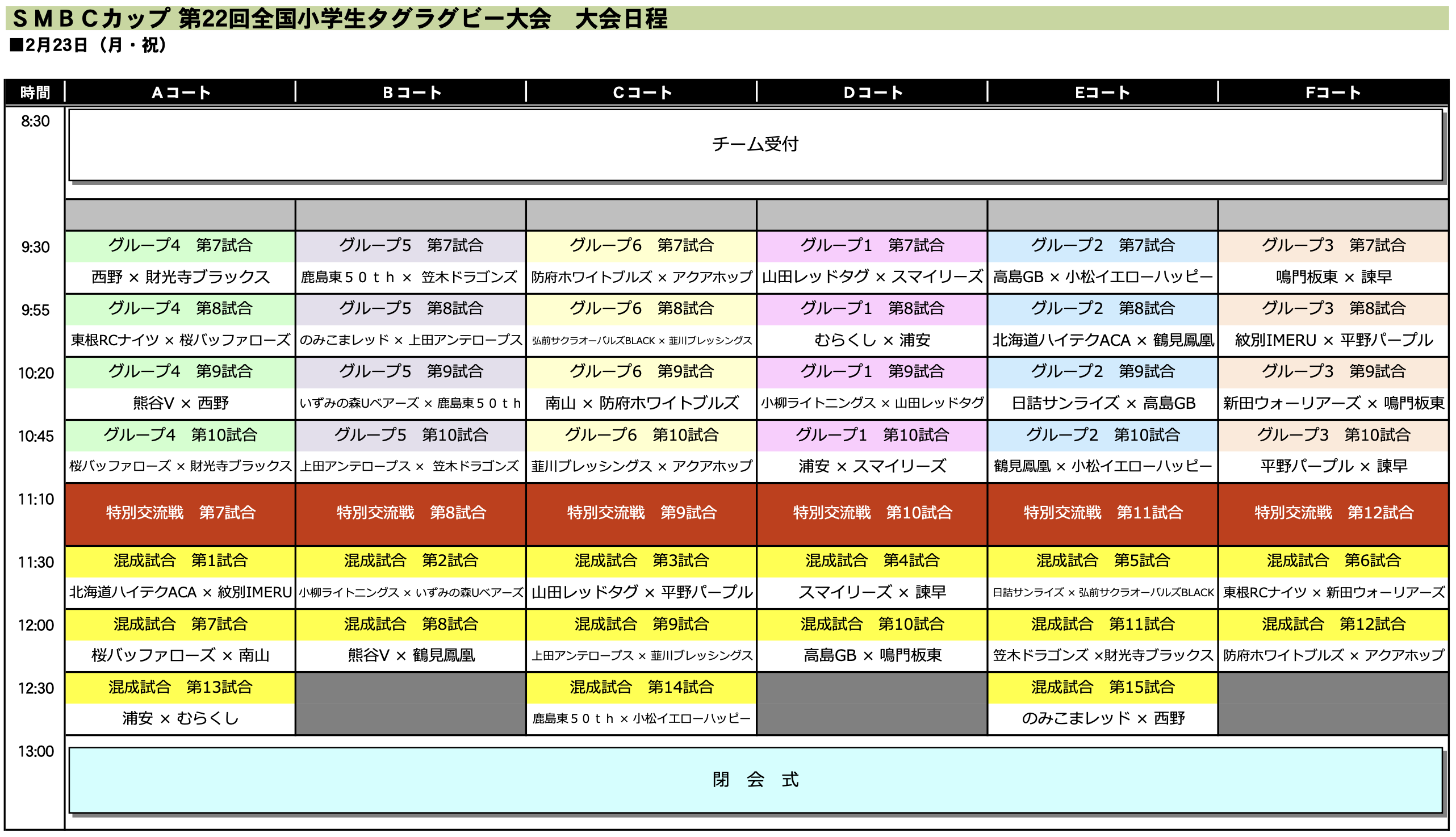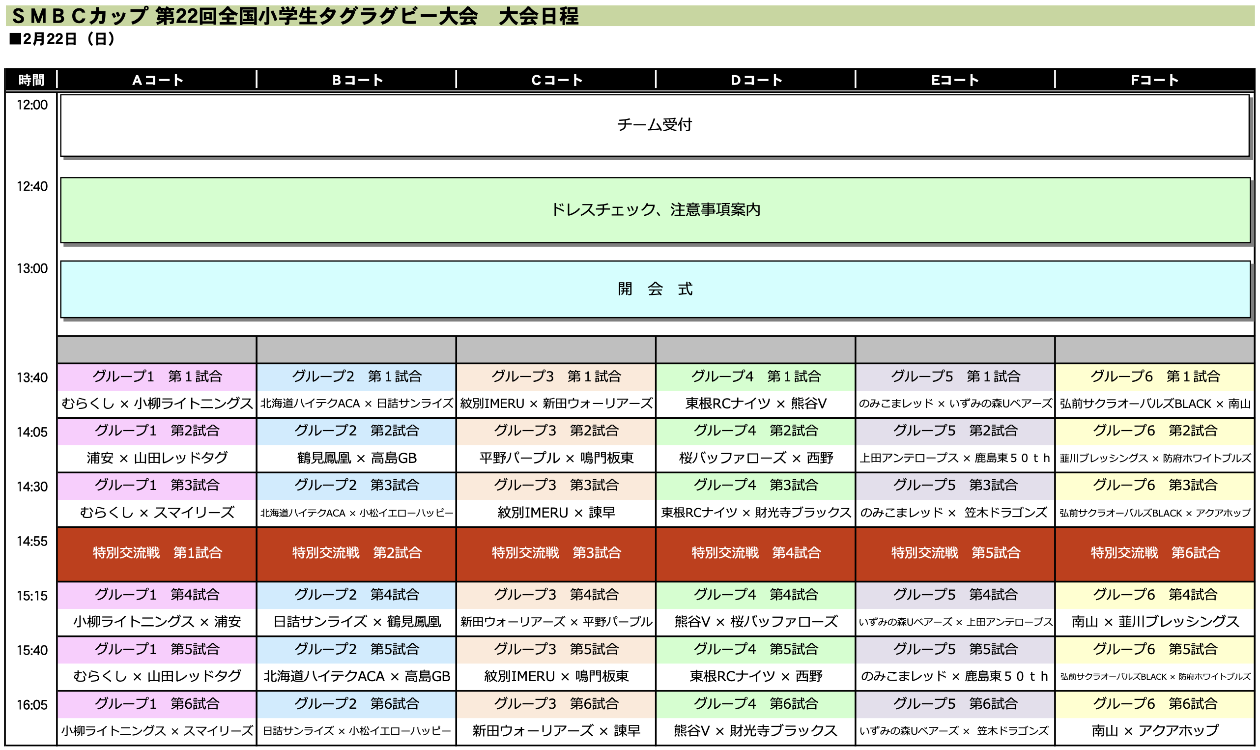 「SMBCカップ 第22回全国小学生タグラグビー大会 全国大会」大会スケジュール